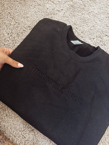 I just work here embroidered crew LG